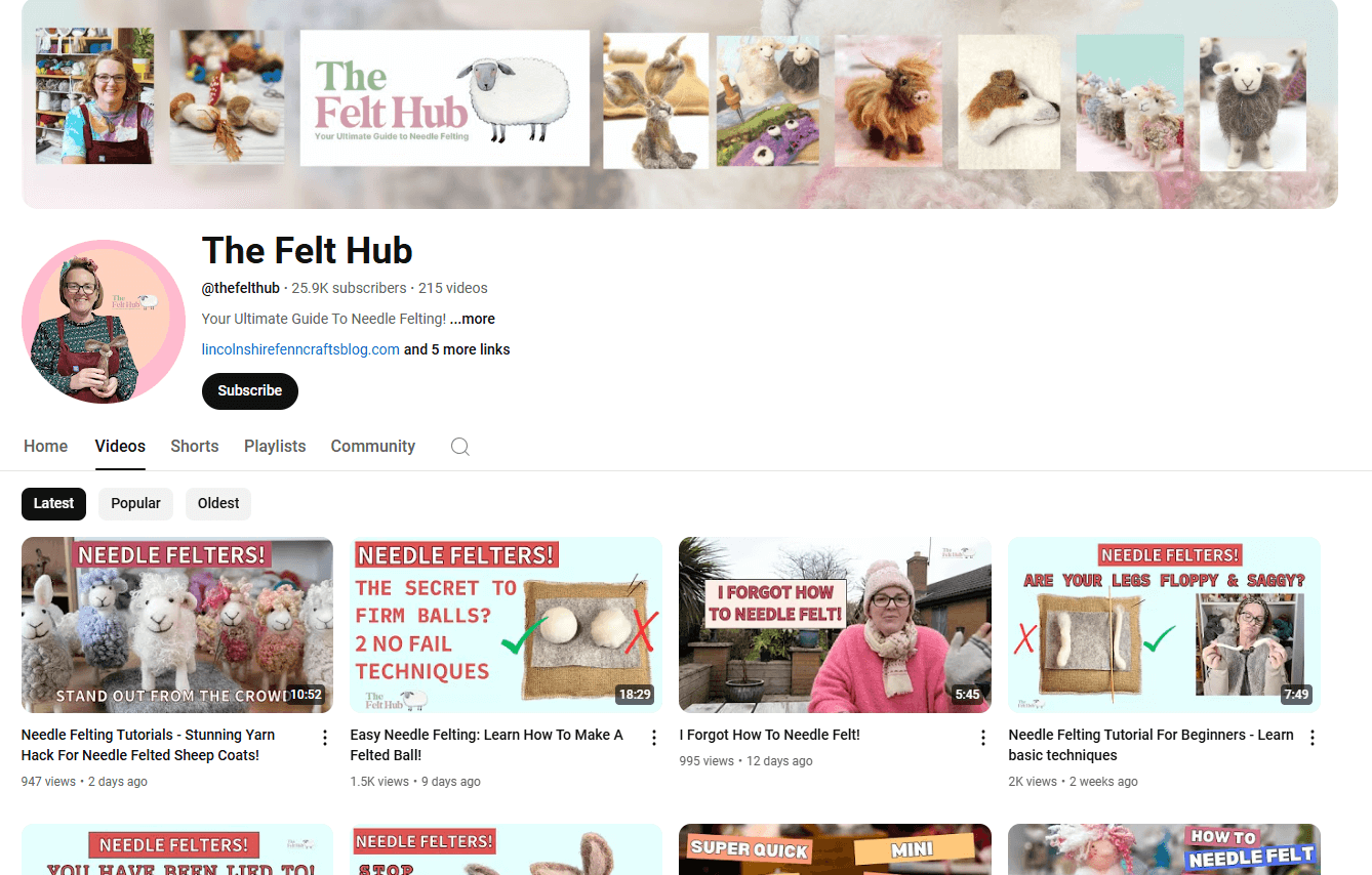 As Sandy's journey evolved following some challenges, The Felt Hub, which Sandy calls her 'love child' was born. The Felt Hub blog includes a wide range of content, such as beginner guides, project ideas, and links to her YouTube videos, and it attracts approximately 20,000 visitors every month, highlighting just how popular our amazing needle felting niche is!😍